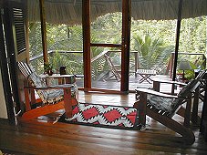 | The focal point of each cabana and villas is the panoramic screened deck with spectacular views of the fast flowing river below, its waterfalls and rock pools - ideal for swimming and sunbathing. |