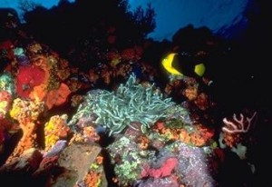Other dive sites, like Twilight Zone, and Third Encounter, offer exactly what their names suggest. Both rock faces lie next to each other and hang about 30 meters above the bottom of the seabed, covered through and through with enormous yellow, violet and orange coloured sponges and giant coral tubes of spectacular beauty.