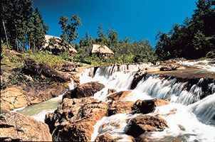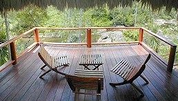| The focal point of each cabana and villas is the panoramic screened deck with spectacular views of the fast flowing river below, its waterfalls and rock pools - ideal for swimming and sunbathing. |